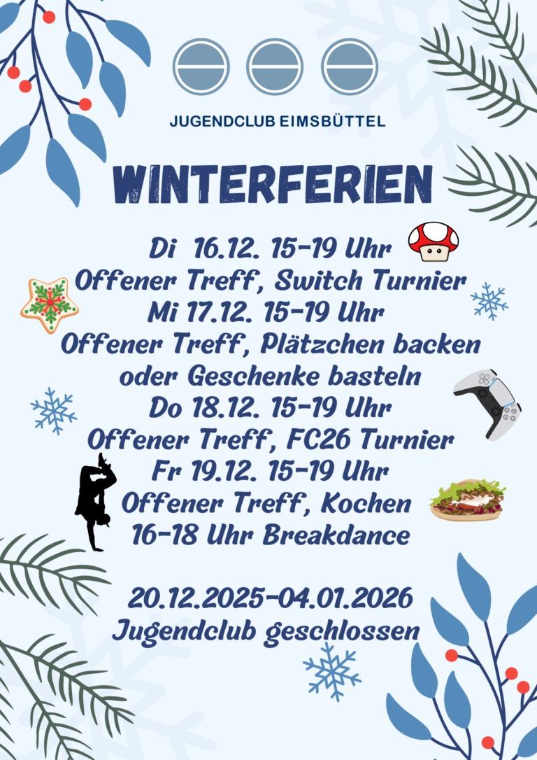 *WICHTIG: Für die Teilnahme an den Ausflügen benötigen wir eine unterschriebene Einverständniserklärung der Eltern. Diesen Anmeldebogen könnt ihr 1 Woche vorher im Jugendclub abholen. Die Barrierefreiheit einzelner Angebote kann in der Einrichtung erfragt werden. Weitere Infos unter 040 40 33 53 oder per Email jugendclub.eimsbuettel@gmx.de oder aktuelles auf unserem Instagram-Account @jugendclubeimsbuettel.